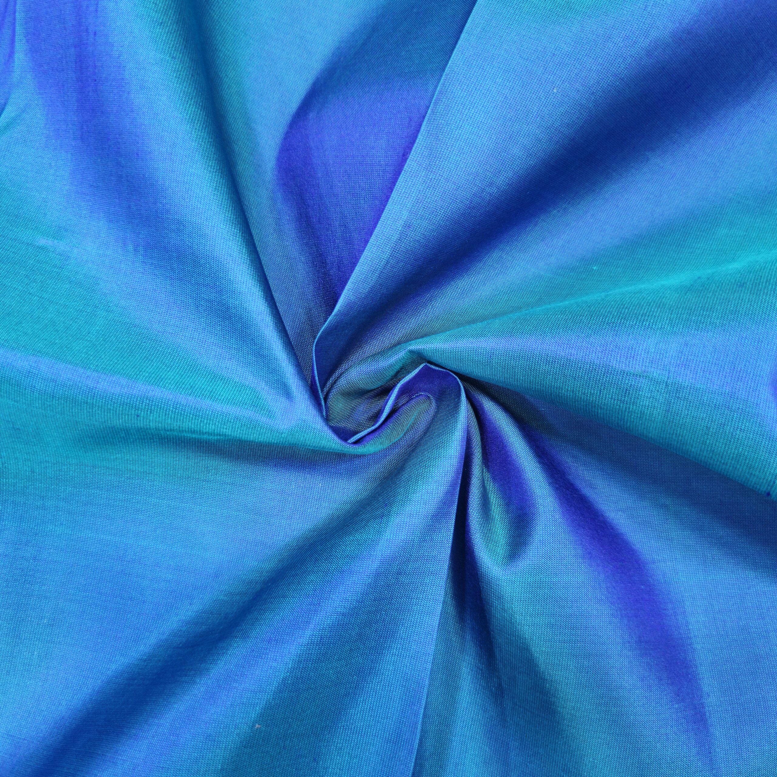 • Pallu & Border: Contrasting teal blue with gold zari